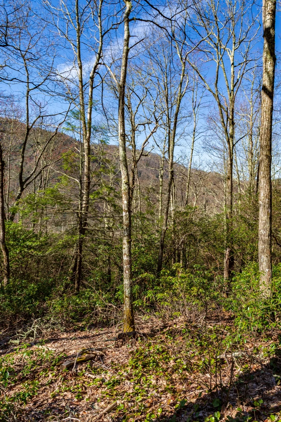 An approximately 4.40 acre wooded private lot with a gentle slope and drive cut in that leads to an ideal building spot with potential long range views of Waterrock Knob and beyond.